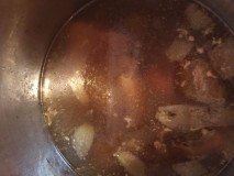 Bone Broth, put in bones and cover with water then add carrots, celery, garlic, vinegar, onion, salt and pepper....bring to a boil for 30 minutes then simmer for 24 hours...pour through a strainer and put in mason jars with sealed lids.